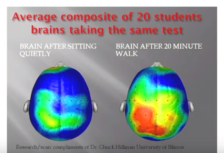 The above image shows how brain activity is improved quite noticeably after just a 20 minute walk! Now, this is what I mean when I say “Exercise contributes as much to Mental Health as it does to Physical Health”.