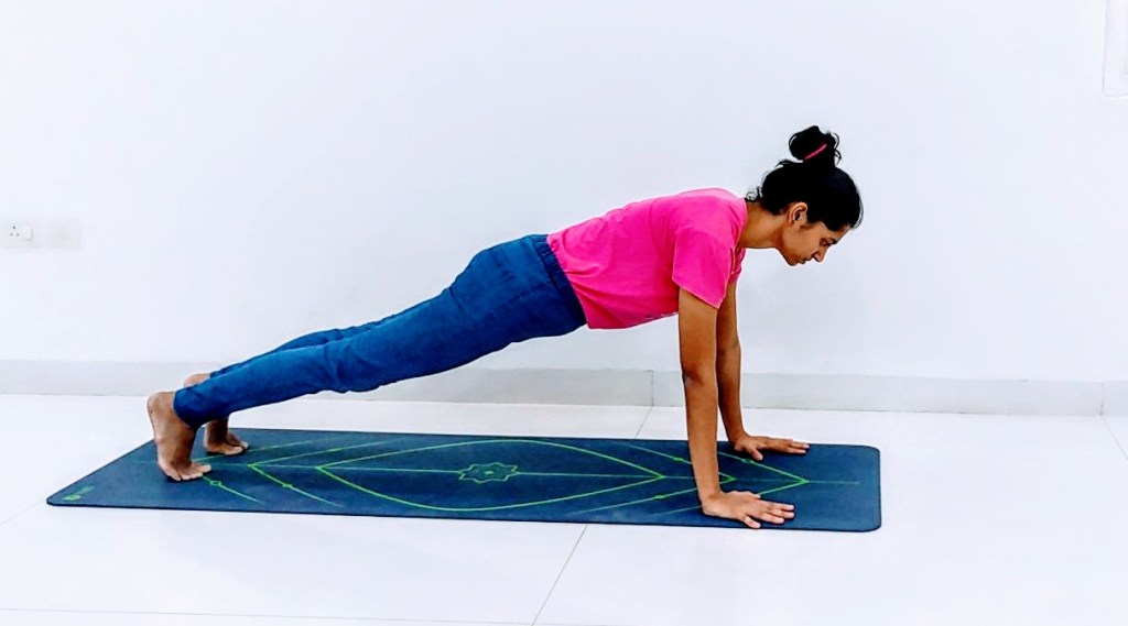 Another important point to keep in mind is the height of your glutes while performing the workout. Maintain your glutes at the perfect plank height. Do not drop or raise them at any point.